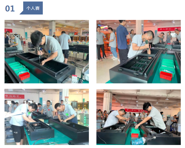 主持人一聲令下,比賽正式拉開(kāi)了帷幕,只見(jiàn)各比賽人員手里不時(shí)變換著各種零件和工具∶螺絲釘、電鉆頭、單元板…雖然都是一樣的程序,但是每個(gè)人在工作中都總結(jié)出了自己的經(jīng)驗(yàn)和妙招。有的人在這個(gè)工藝駕輕就熟,有的人對(duì)那個(gè)工藝胸有成竹,你追我趕,真是八仙過(guò)海,各顯神通。每一個(gè)參賽選手都全神貫注,比賽現(xiàn)場(chǎng)雖然安靜,但處處透露著比賽的激烈。