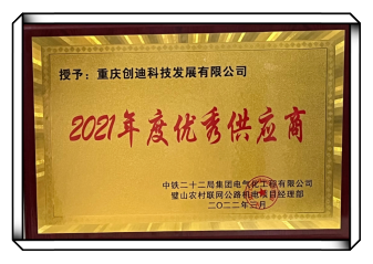 最新喜訊:我司被中鐵二十二局集團(tuán)電氣化工程有限公司璧山農(nóng)村聯(lián)網(wǎng)公路機(jī)電項(xiàng)目經(jīng)理部評(píng)為“2021年度優(yōu)秀供應(yīng)商”,并榮獲客戶頒發(fā)的優(yōu)秀供應(yīng)商牌匾。