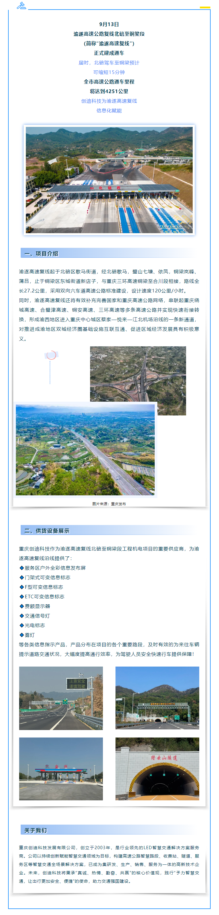 重慶創(chuàng)迪科技助力丨渝遂高速復(fù)線北碚至銅梁段項目建成通車!.